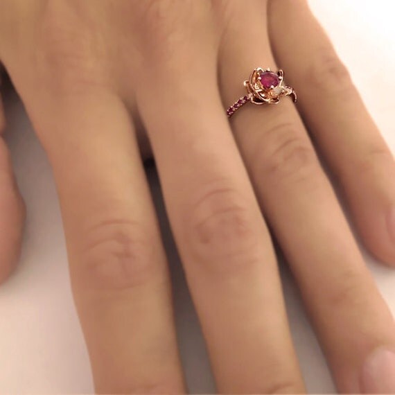 Beautiful flower design red ruby engagement ring is set with a beautiful 0.50ct (5mm) natural round cut center red burma rubyThe small rubies on the band are beautiful round cut, a total of 20 with a total weight of 0.20ct.You can also order the ring in 18k, platinum or palladium. Contact us for a quote.Wonderful things you get with your order!Beautiful jewelry ring box.30 days money back guarantee.Certificate of Authenticity (Appraisal Certificate).Free diamond grading report from 0.50 carat and up.Extremely fast, trackable and insured courier shipping.100 Year Warranty (Read more on "Shipping & Policies" above)Customer service available 24 hours a day, 7 days a week.Our conflict free diamonds are mined, cut and polished in a socially and environmentally responsible manner. Stated in the appraisal certificate.We offer Easy Payment Plan! No-Fee. Contact us for more details or read more on "Shipping & Policies" above.We have a great selection of engagement ringshttp://www.etsy.com/shop/ldiamonds?section_id=7816622You might also like to see our wedding bandshttp://www.etsy.com/shop/ldiamonds?section_id=7816721Design your ownhttp://www.etsy.com/conversations/new?with=ldiamonds&subject=Handmade+RequestFind us on facebook! http://www.facebook.com/love0diamonds_______________________________Looking for unique sterling silver and gold plated jewelry?Click here https://www.etsy.com/shop/myrozmarin