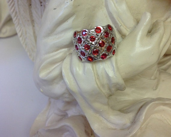Genuine Red Ruby Filigree Dome Ring Metal Type: Sterling Silver 925 White Gold PlatedSize : 7Main Stone: Genuine Red RubyColor: RedCut: FacetReady to ship in 1-3 business days.---- For more questions, please don't hesitate to contact me ----You can also send me a message straight from Etsy Thank you for taking the time to browse our galleries and we hope you will be able to visit us often.Style No: SB41