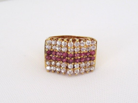 Vintage Sterling Silver Gold Vermeil Natural Ruby & CZ Dome Ring ...Marked 925..Total of weights 6.2grams..Size 6.5...Measure of Face 12.5mm...It's in very good vintage condition