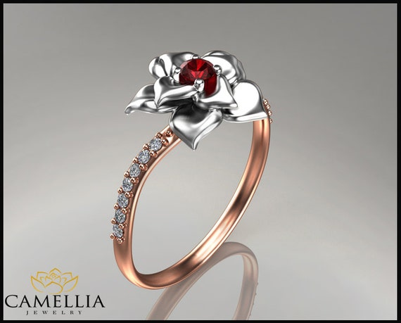 14K Two-Tone Gold Ruby Ring,Engagement rings, Flower Ring,Wedding Ring,Promise Ring,Ladys Jewelry,Unique Engagment Ring.