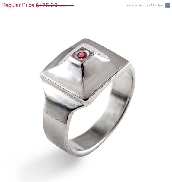 ON SALE - PYRAMID Ring, Unique Men's Ring, Sterling Silver Men's Ring, Men's Ruby Ring, Men's Silver Ring, Silver Ruby Ring, Egyptian Ring