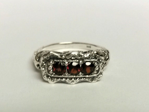 Size 5.75 Sterling Silver 925 Red 1/3ct Garnet Victorian Antique Style Ring Stunning