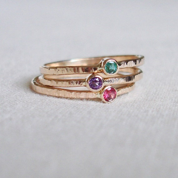 Attention: This listing was changed on April 7, 2014: the materials used to make this have been upgraded to all solid 14k gold. The original was made with gold filled material for the bands, but I have discontinued using gold filled material for various reasons. If you would still like to purchase the original set with solid 14k gold settings and 14k gold filled bands, please let me know, as I will make them upon request only (I will create a custom order for you) and for only about one month after the upgrade. Please read below for information about this listing (stone options, sizes, etc.) And please let me know questions if you have them- thank you!